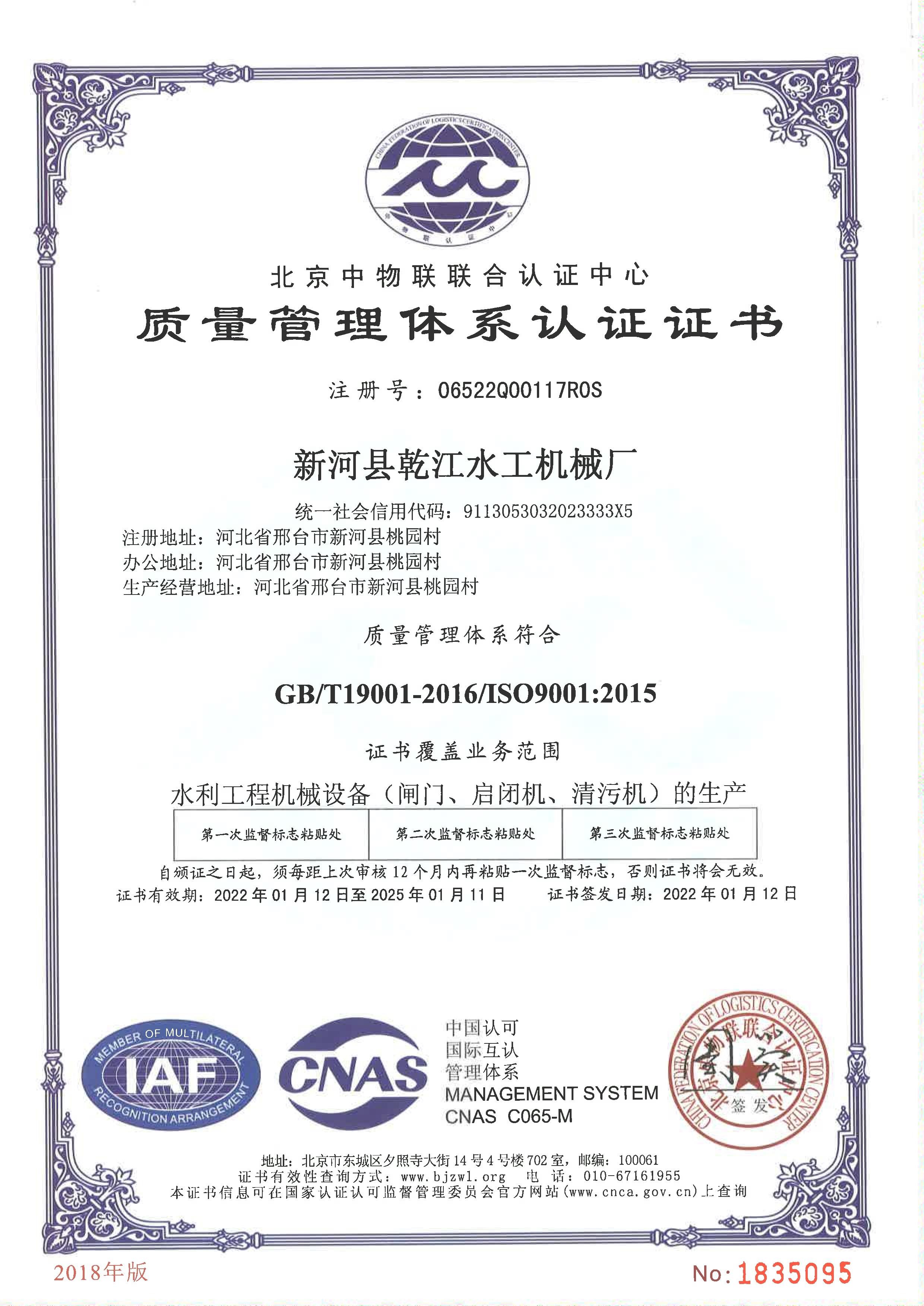 新河縣乾江水工機械廠坐落于河北省新河縣工業(yè)園區(qū),本廠是專業(yè)研發(fā).生產(chǎn)水利機械產(chǎn)品的廠家。本廠閘門.啟閉機.清污設(shè)備等產(chǎn)品的技術(shù)上具有豐富的實際經(jīng)驗,并注重新產(chǎn)品的開發(fā)研制。        啟閉機類:QL